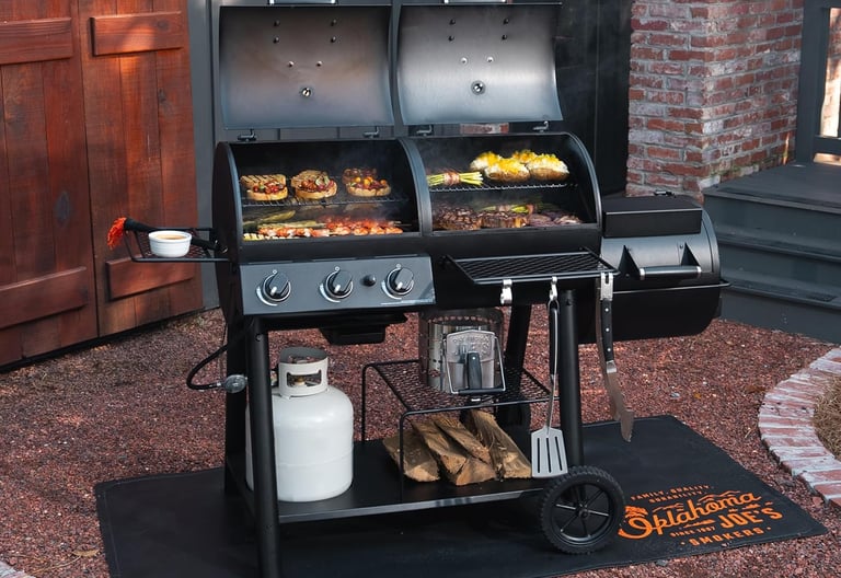 Can’t decide between charcoal and gas? Hybrid combo grills let you switch between cooking styles depending on your mood or menu. Some models even include smoker boxes or rotisserie kits. Oklahoma Joe makes a solid Dual Fuel hybrid grill, for those who love charcoal and convenience. https://amzn.to/4018PhV