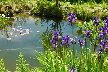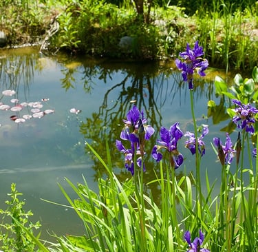 Iris, Pickerelweed, and Cattails – Thrive at pond edges and offer nesting material for birds.