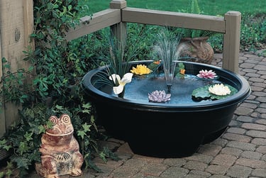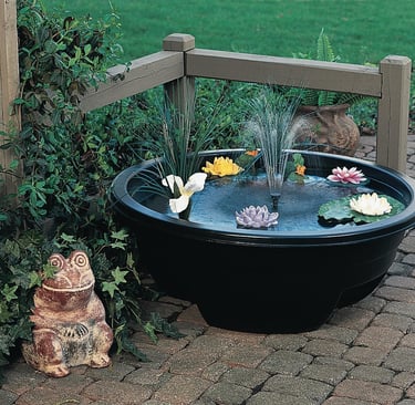 Container or Patio Pond – For small spaces, a ceramic bowl or whiskey barrel can hold aquatic plants and mini fountains.