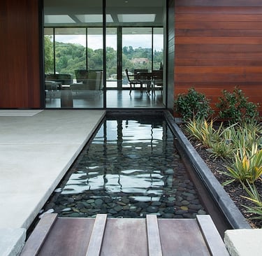 Formal Reflecting Pond – Clean lines, symmetry, and still water for a minimalist, meditative aesthetic.