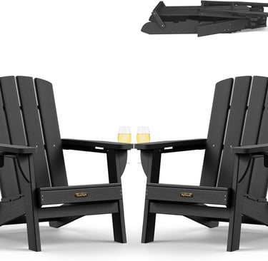 We use Adirondack chairs around our fire pit, we love these black folding HDPE chairs because they stand up to our harsh winters and no paint to fade or flake. They even have a handy cupholder. https://amzn.to/3G7seqS