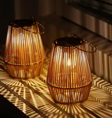 Solar lanterns are a perfect no fuss option to help bring in some extra light and texture to a space. We love these Outdoor Waterproof Hanging Solar Lights, you can place them on the ground, hang from a Shepards hook or a tree and they create a perfect ambiance. https://amzn.to/4lrjlHm