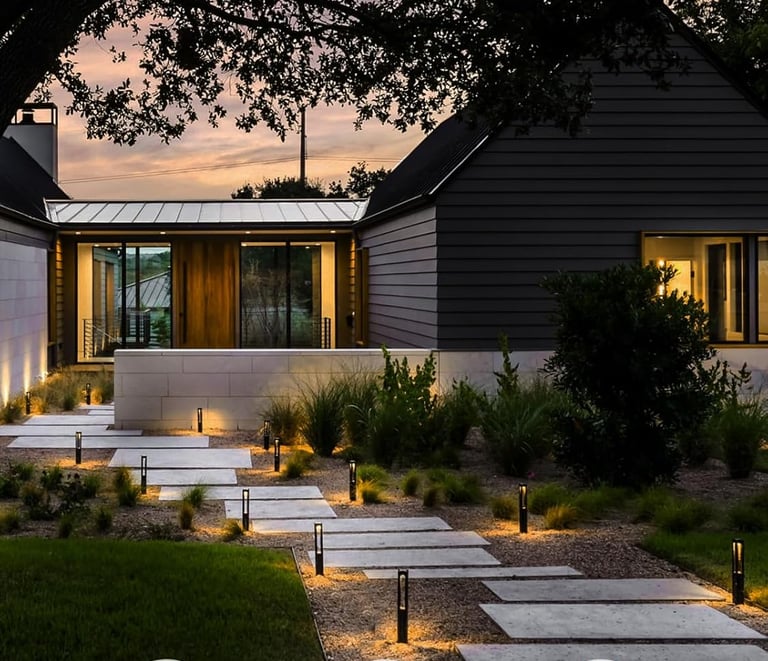 Outdoor lighting works best when approached in layers — just like the interior of your home. Think about function first, then build ambiance and warmth around it.