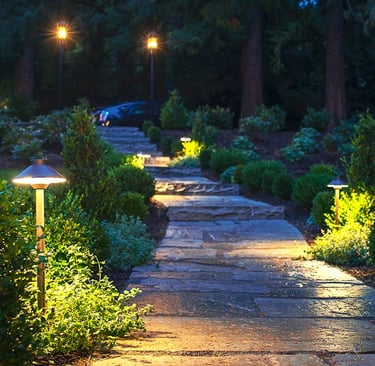 Path lighting serves both a functional and aesthetic purpose. It illuminates walkways for safety while subtly showcasing your garden’s edges and curves. We highly recommend using wired low voltage landscape lighting. This option is a lot more custom and has more option to choose from. These lights are worth the investment in time and money.