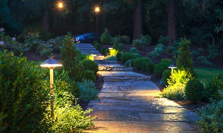 Explore string lights, solar lamps, uplighting, path lights, and more